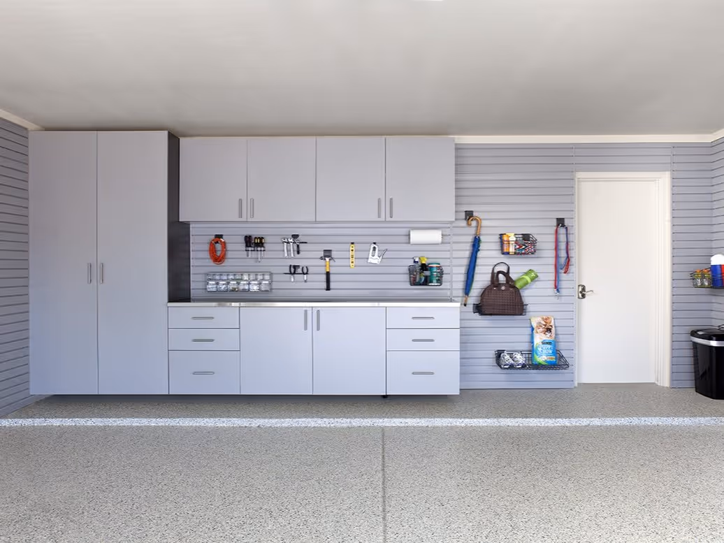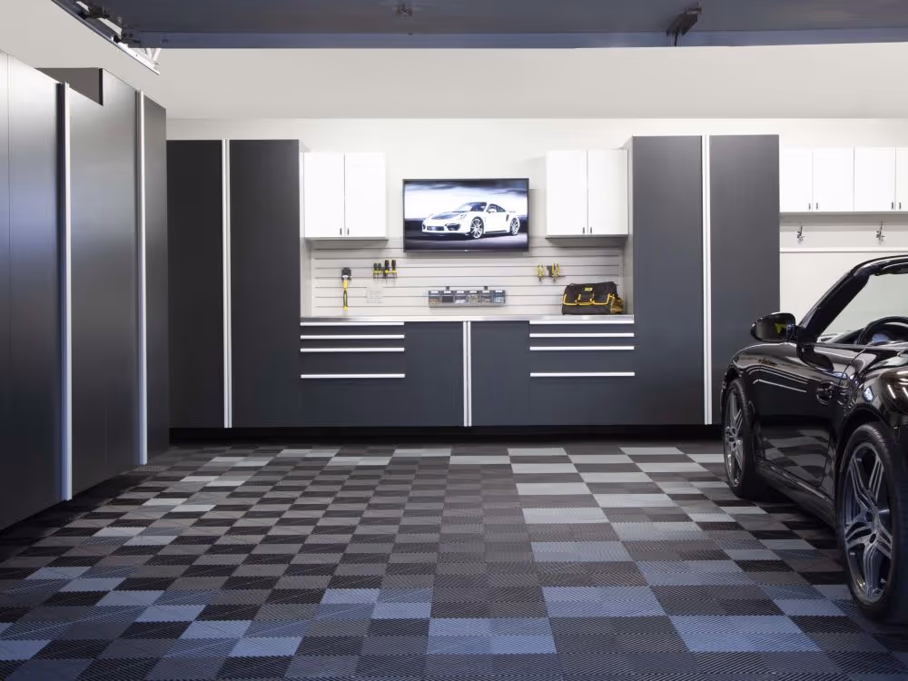 Our garage transformation system is built on the four pillars shown below—durable flooring, spacious cabinets, flexible wall storage, and smart overhead racks. Explore how these foundational elements work together to create your ultimate garage.