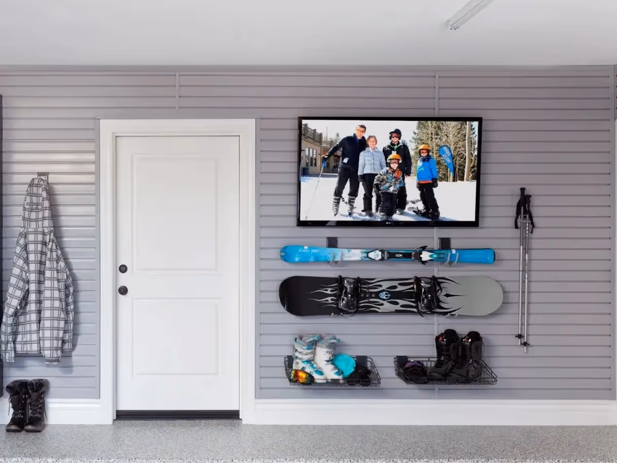 Our Slatwall panels installed directly into the wall, our fully compatible wall organizer system make it possible to easily attach and re-attach hooks and accessories without tools or drilling.